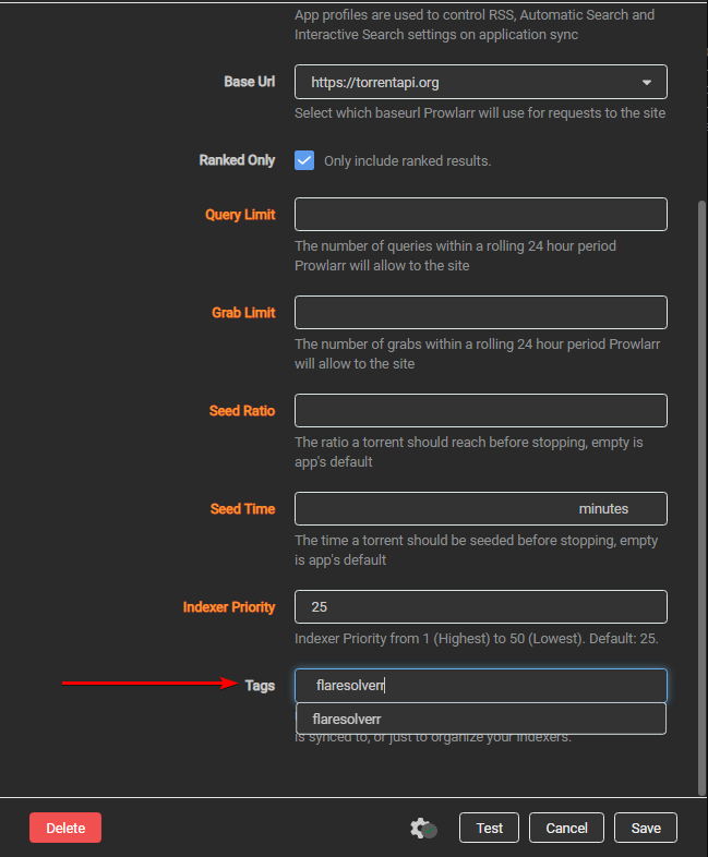 • A FlareSolverr Proxy will only be used for requests if and only if the Proxy and the Indexer have matching tags