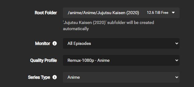 If you must have Dual Audio releases set the Minimum Custom Format Score to 2000 in the Remux-1080p - Anime profile that you setup earlier.